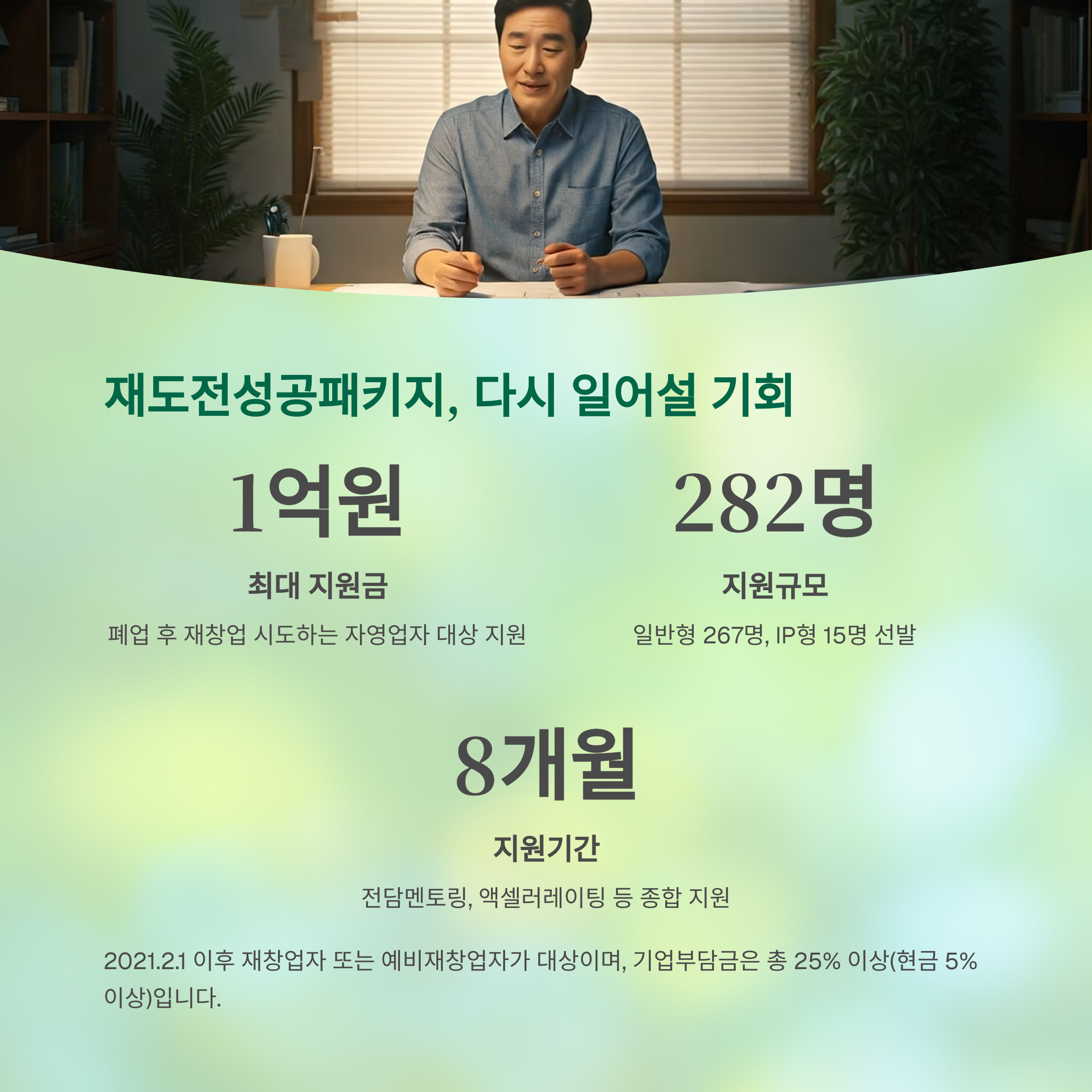 최대 1억 원까지 지원하는 재도전성공패키지는