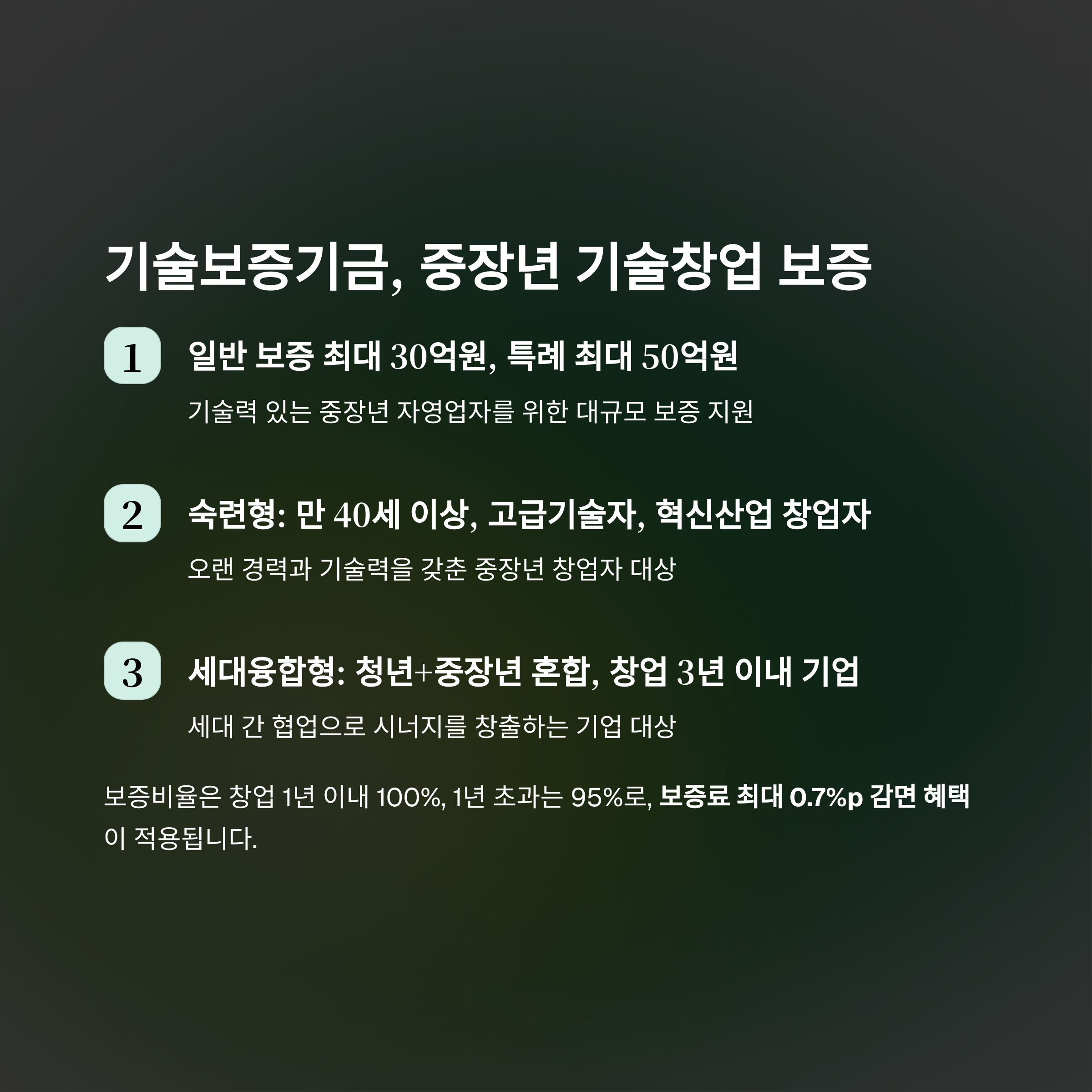 50대 자영업자를 위한 중장년 기술경력자 창업보증은