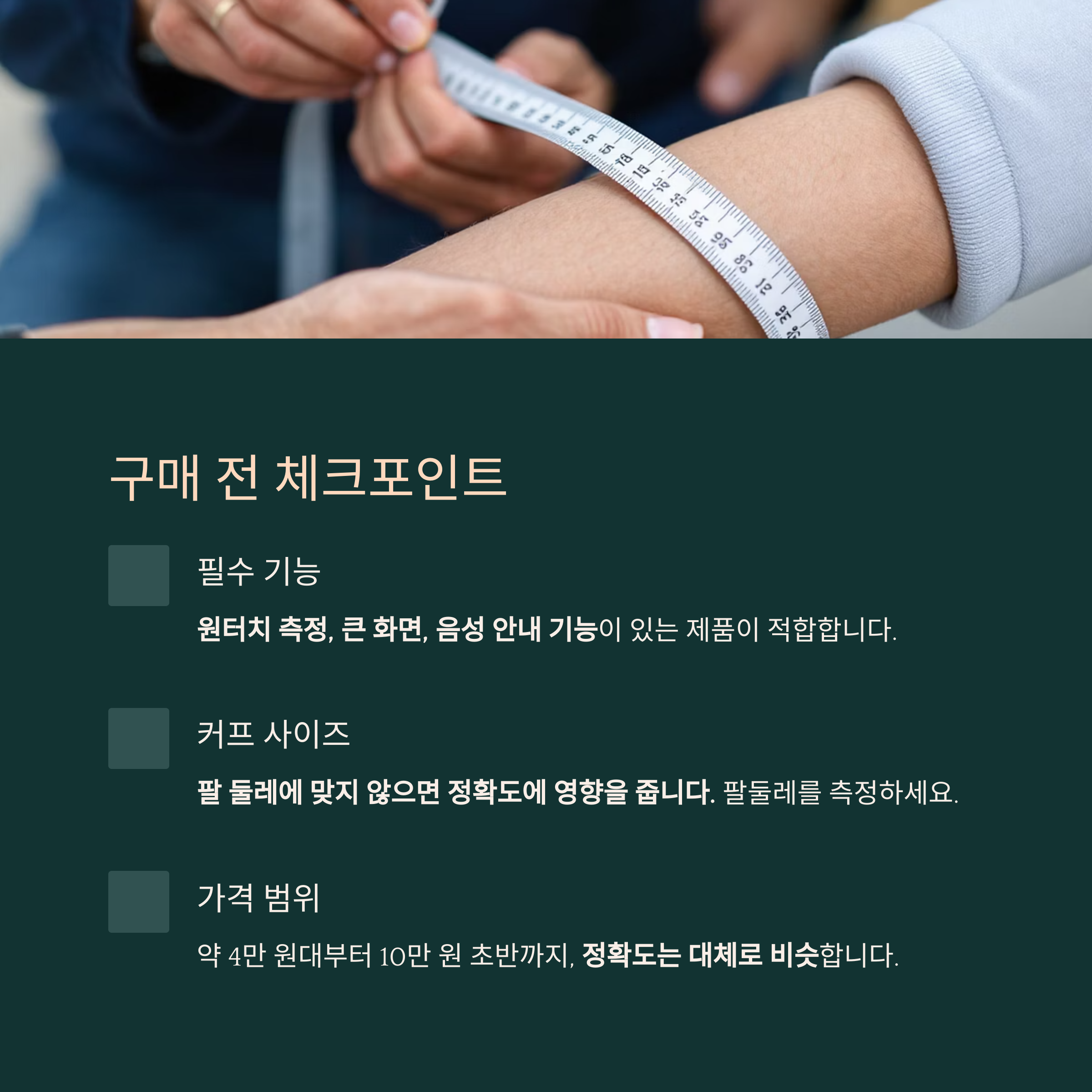 | 손목형 | 휴대 간편, 측정 정확도 낮음 | 출장·여행 잦은 사용자 |