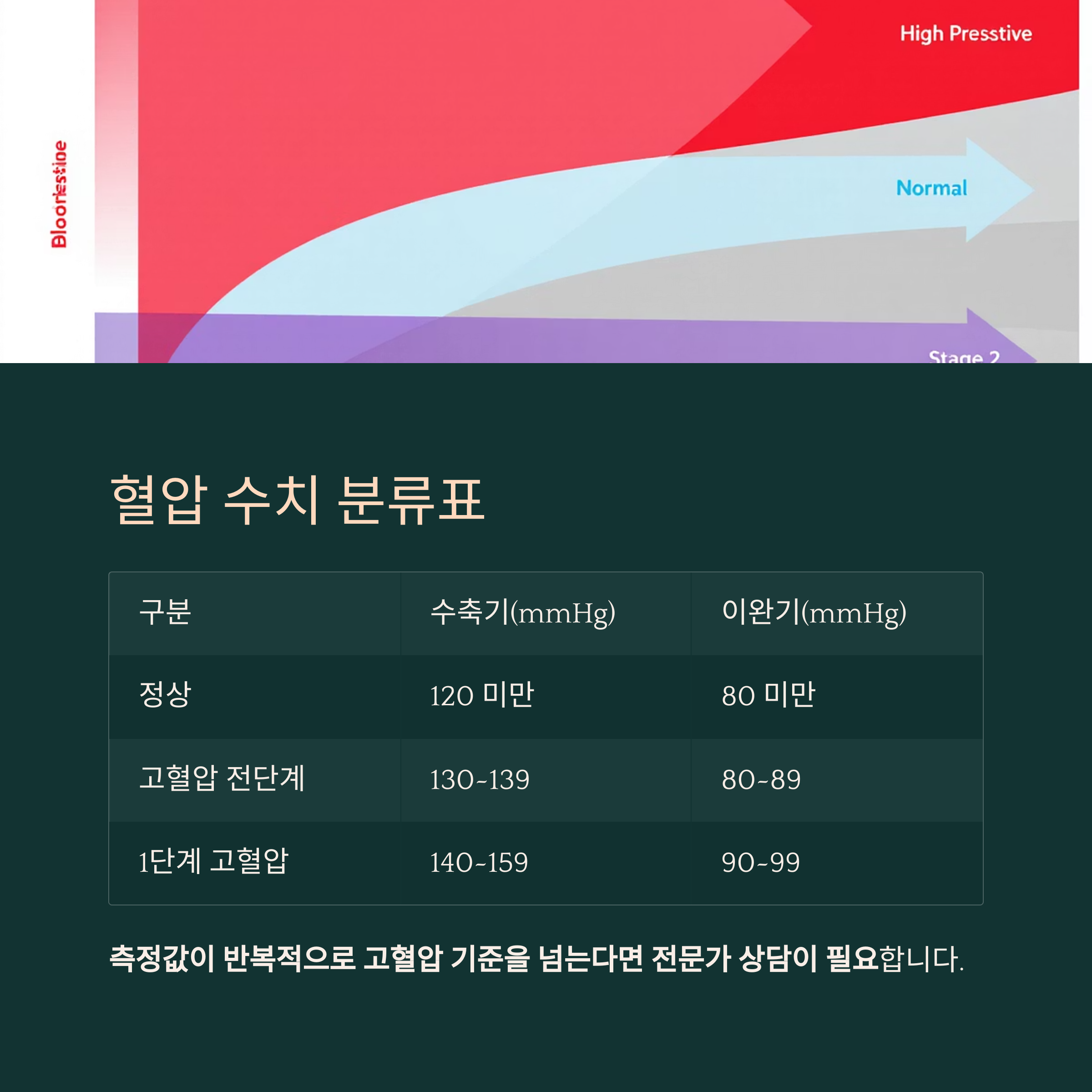 측정값이 반복적으로 고혈압 기준을 넘는다면 전문가 상담이 필요합니다.