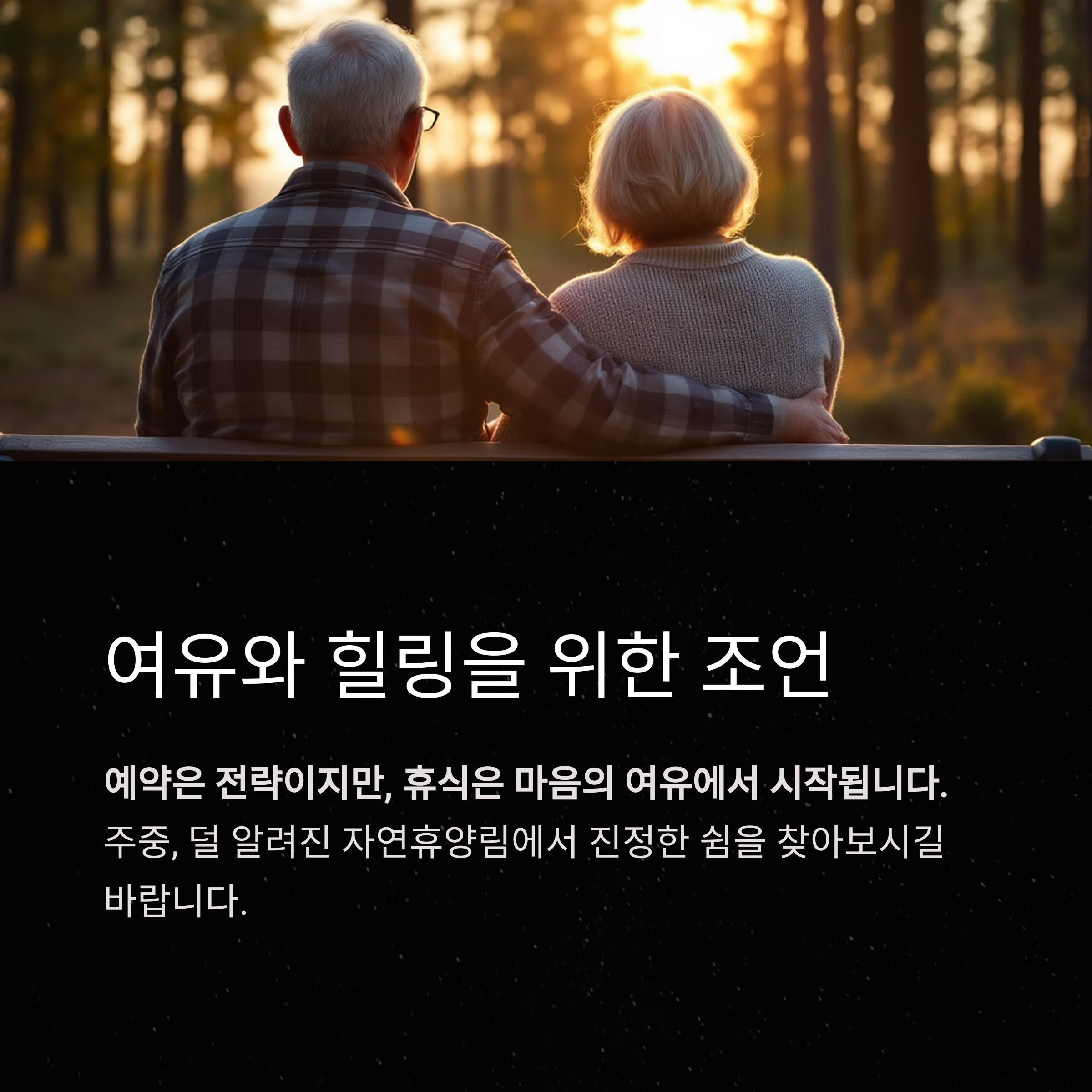 중장년층이 자연휴양림을 더욱 효율적이고 안전하게 예약하고 즐길 수 있는 꿀팁을 알려드립니다.