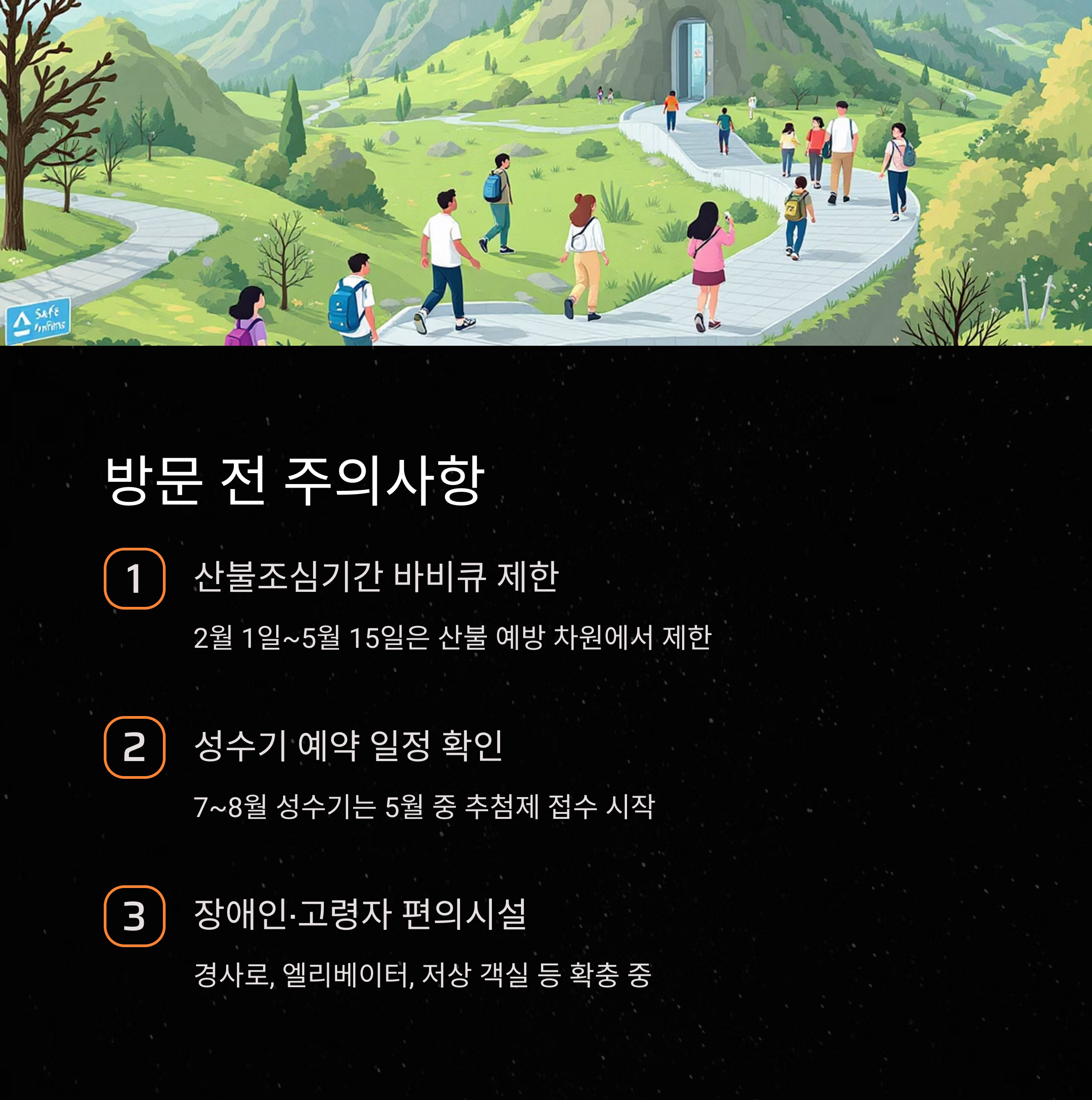 7월 중순~8월 성수기 예약은 별도 공지되며, 5월 중 추첨제 접수가 시작됩니다. - 장애인·고령자 편의시설 확대