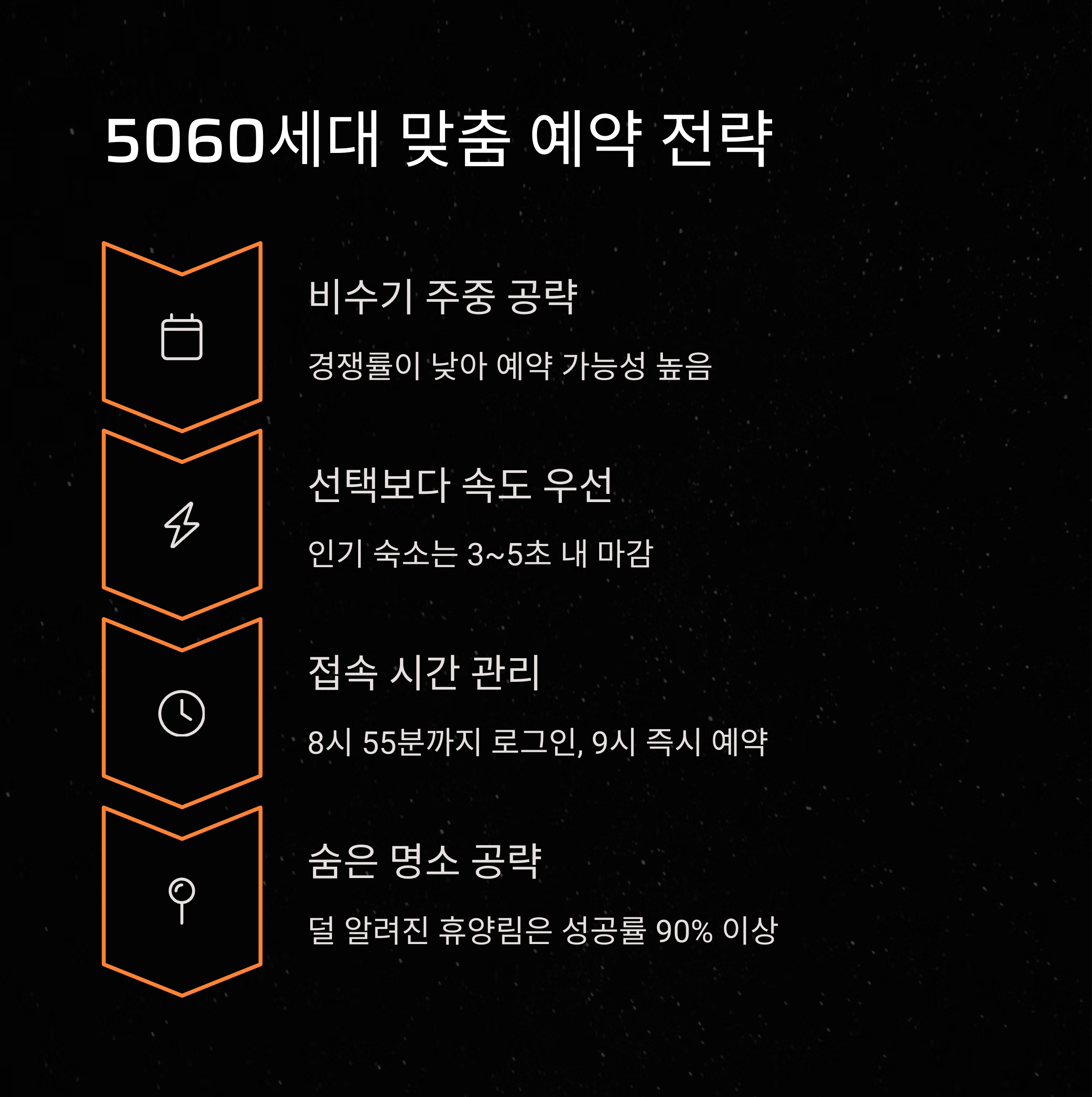 인기 숙소는 예약 개시 3~5초 내 마감되므로 빠른 클릭이 관건입니다. - 접속 시간 관리