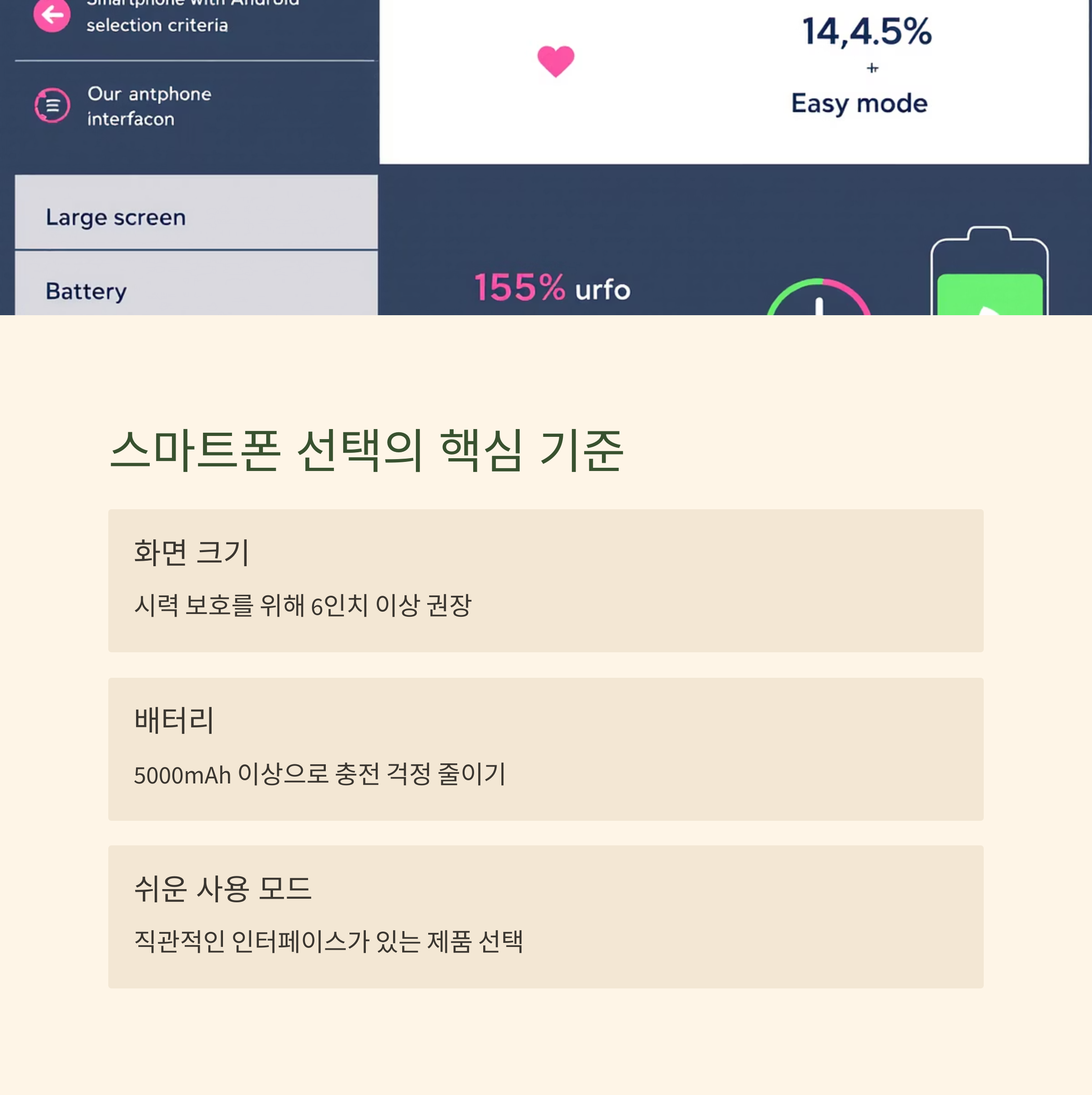 시력이 약한 어르신들을 고려해 6인치 이상의 화면,