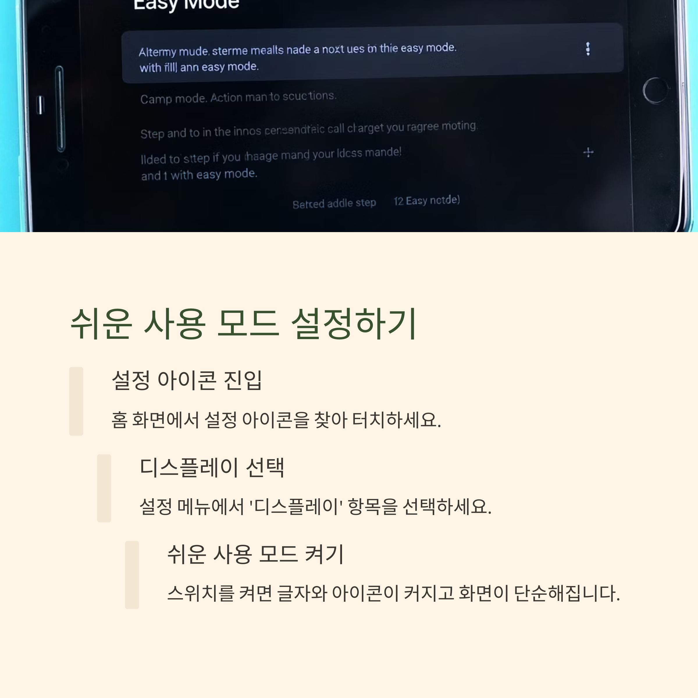 쉬운 사용 모드, 글자 크기, 앱 정리, 알림 설정 등