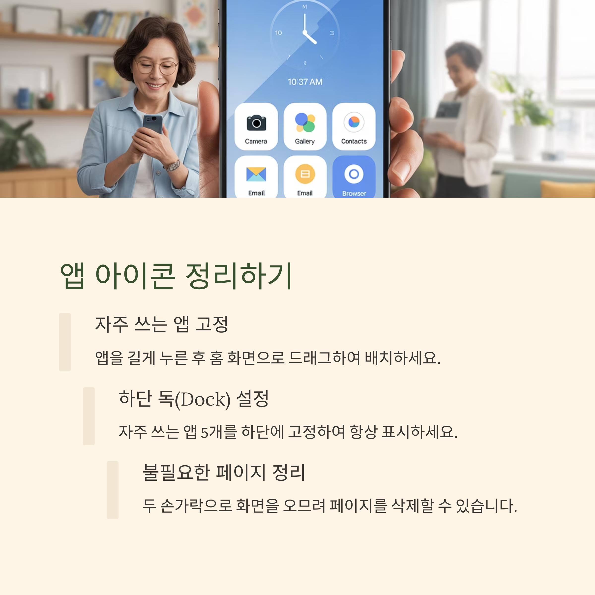 | 하단 독(Dock) 설정 | 자주 쓰는 앱 5개를 고정하여 항상 표시 |