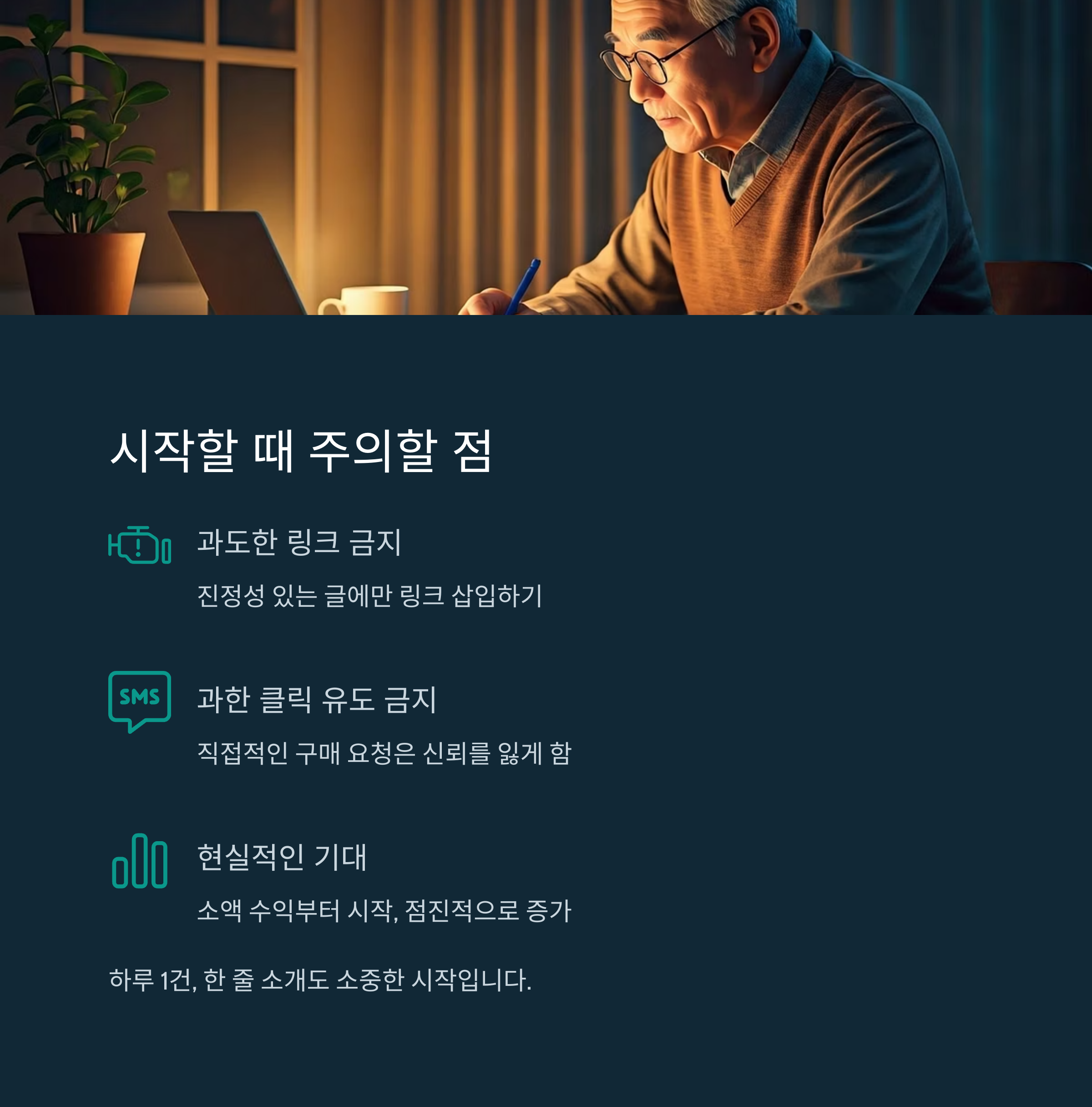 | 너무 많은 링크 생성 금지 | 진정성 있는 글에만 삽입 |