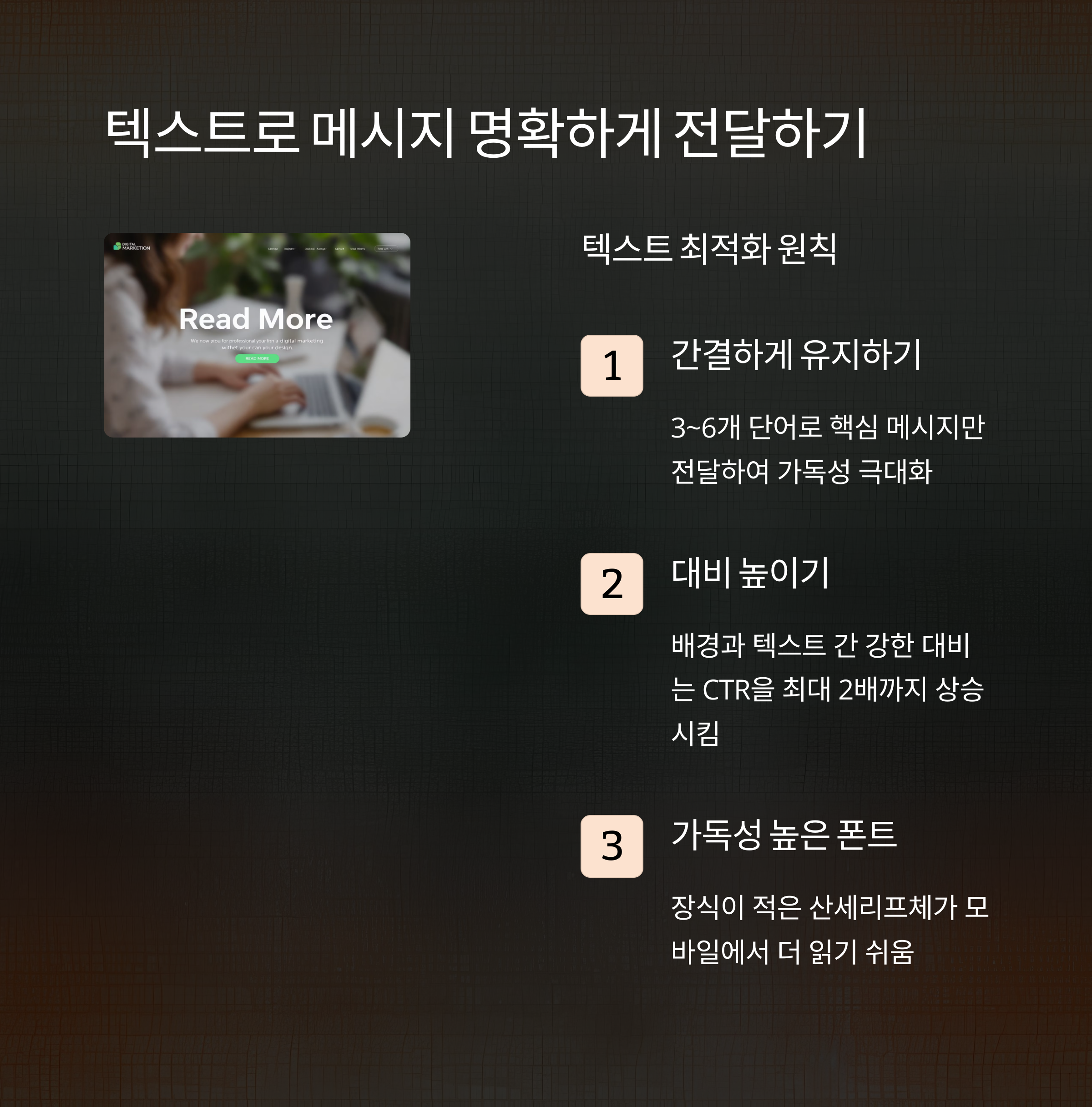 텍스트가 메시지를 명확히 전달해 주기 때문에 권장됩니다. 특히 SNS 공유 시 효과가 큽니다.