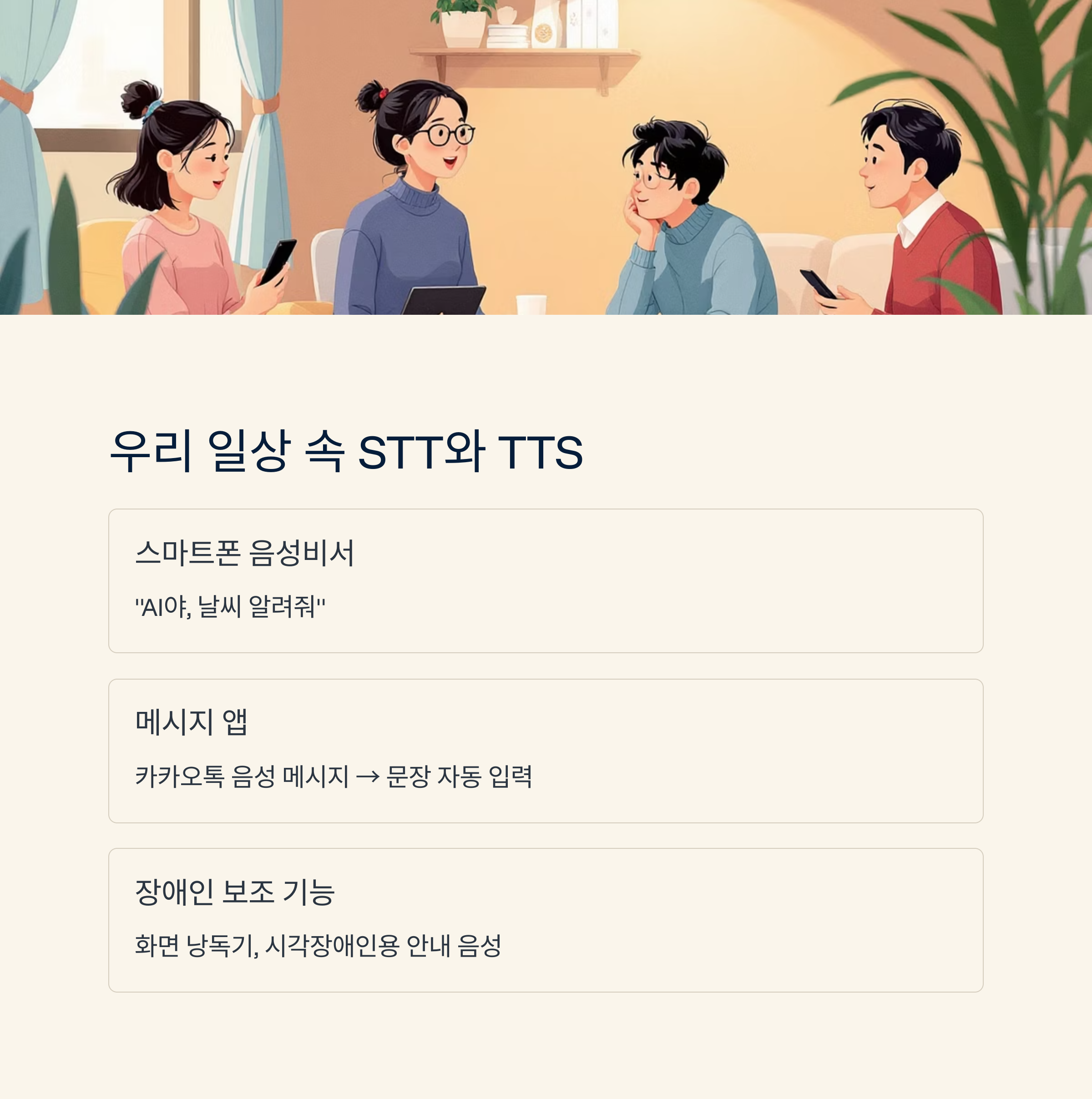 반대로 **TTS(Text to Speech)**는 글을 음성으로 변환하는 기술입니다.