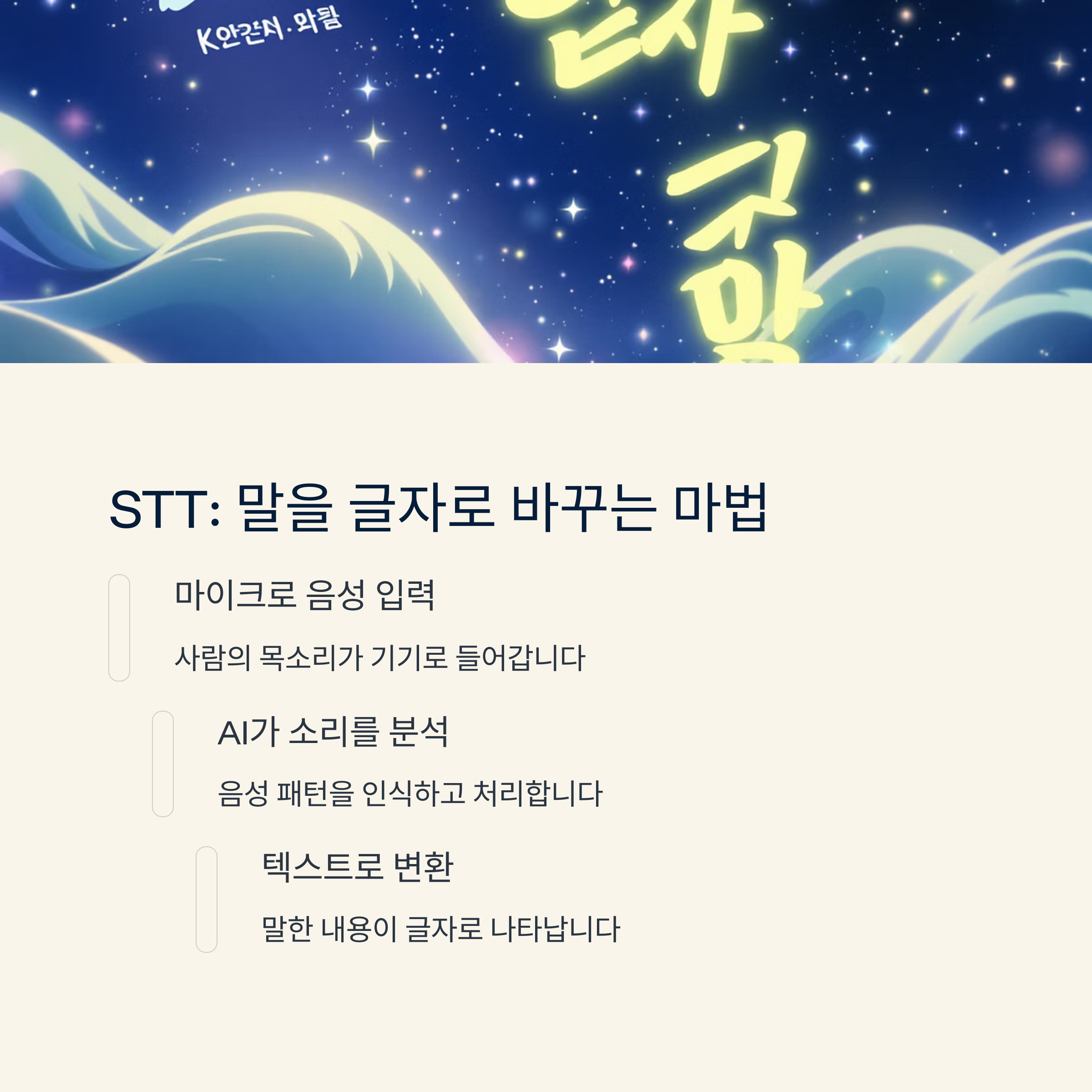 이 기술이 바로 **STT, 즉 'Speech to Text'**입니다.
