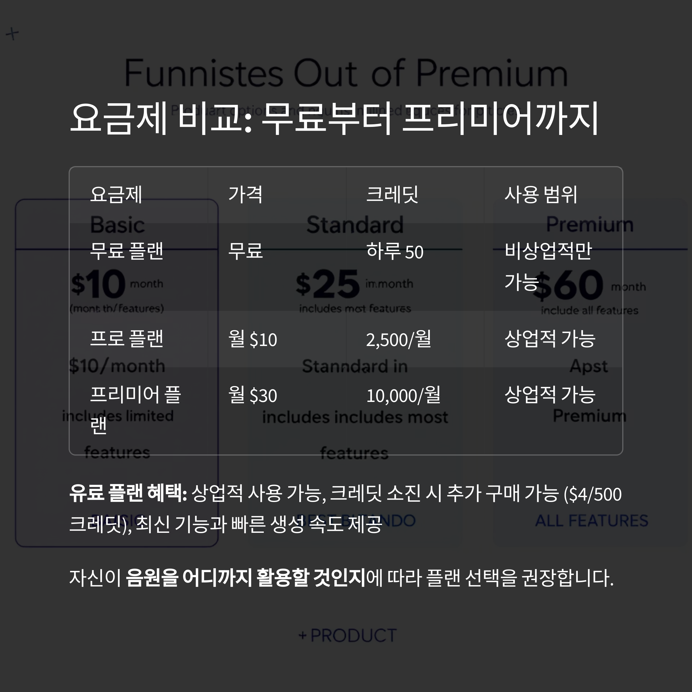 자신이 음원을 어디까지 활용할 것인지에 따라 플랜 선택을 권장합니다.
