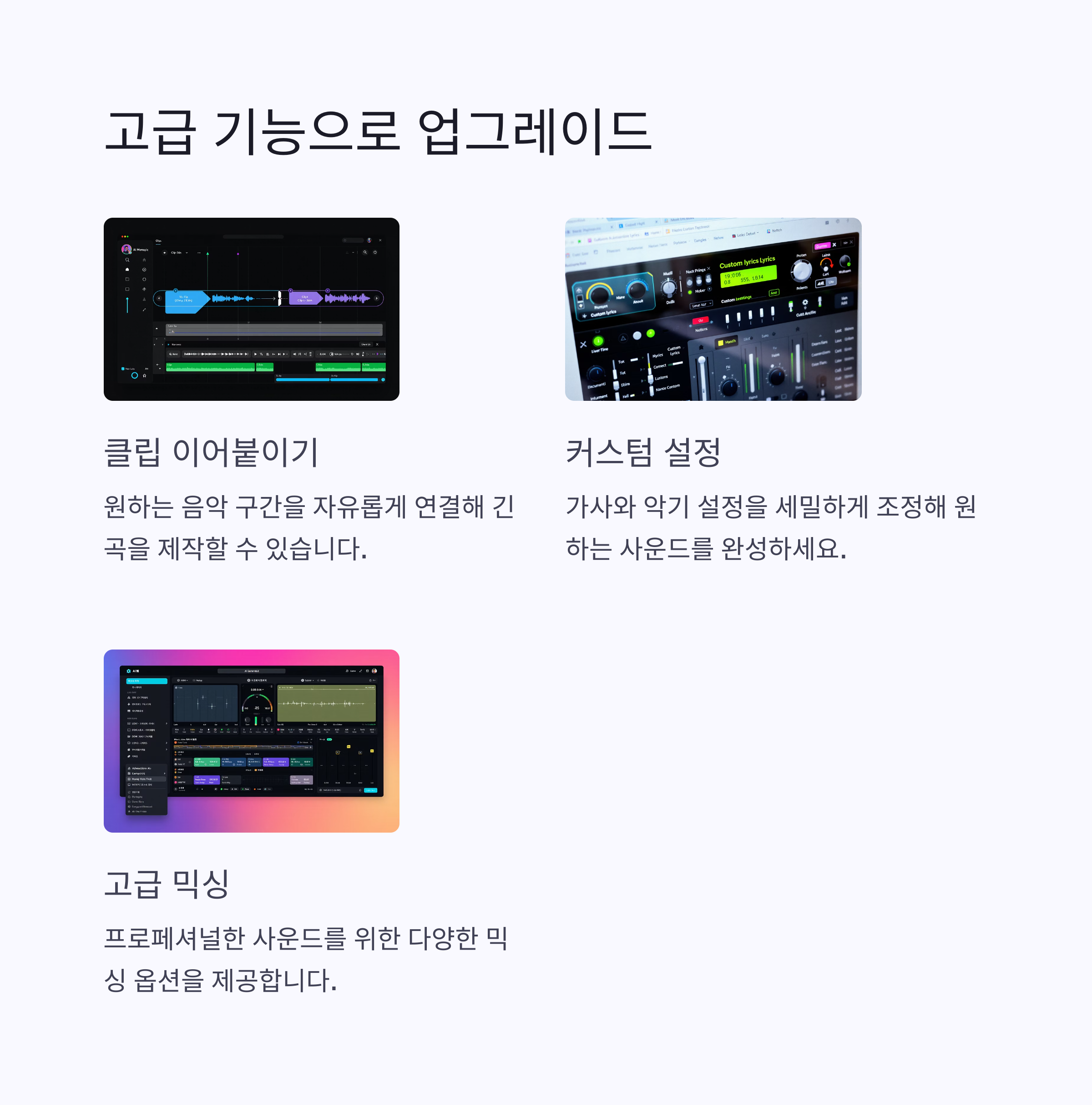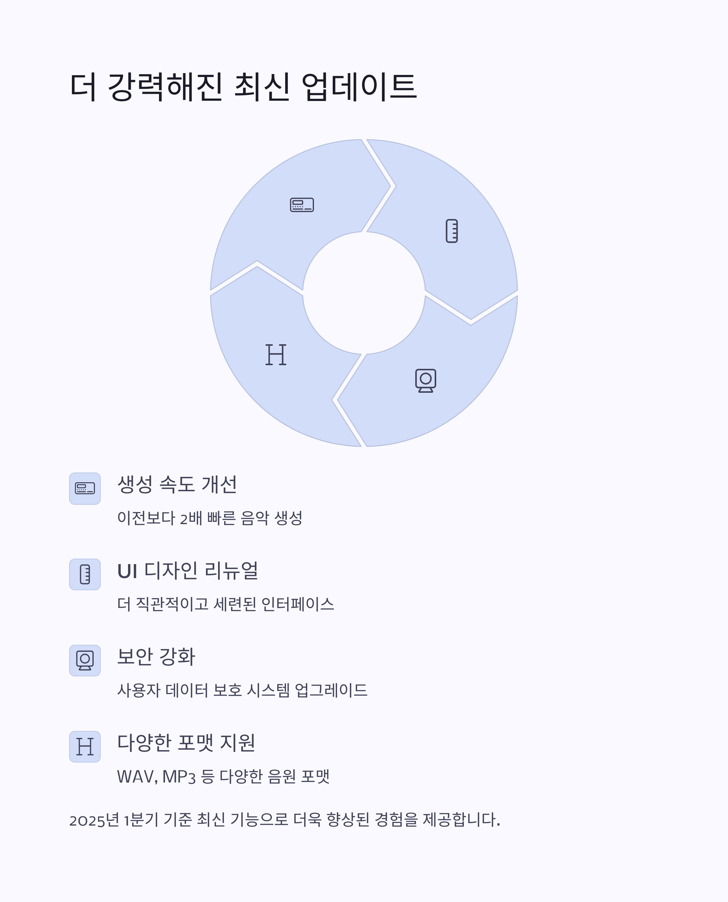 - 새 AI 모델 적용 → 더 자연스럽고 빠른 곡 생성