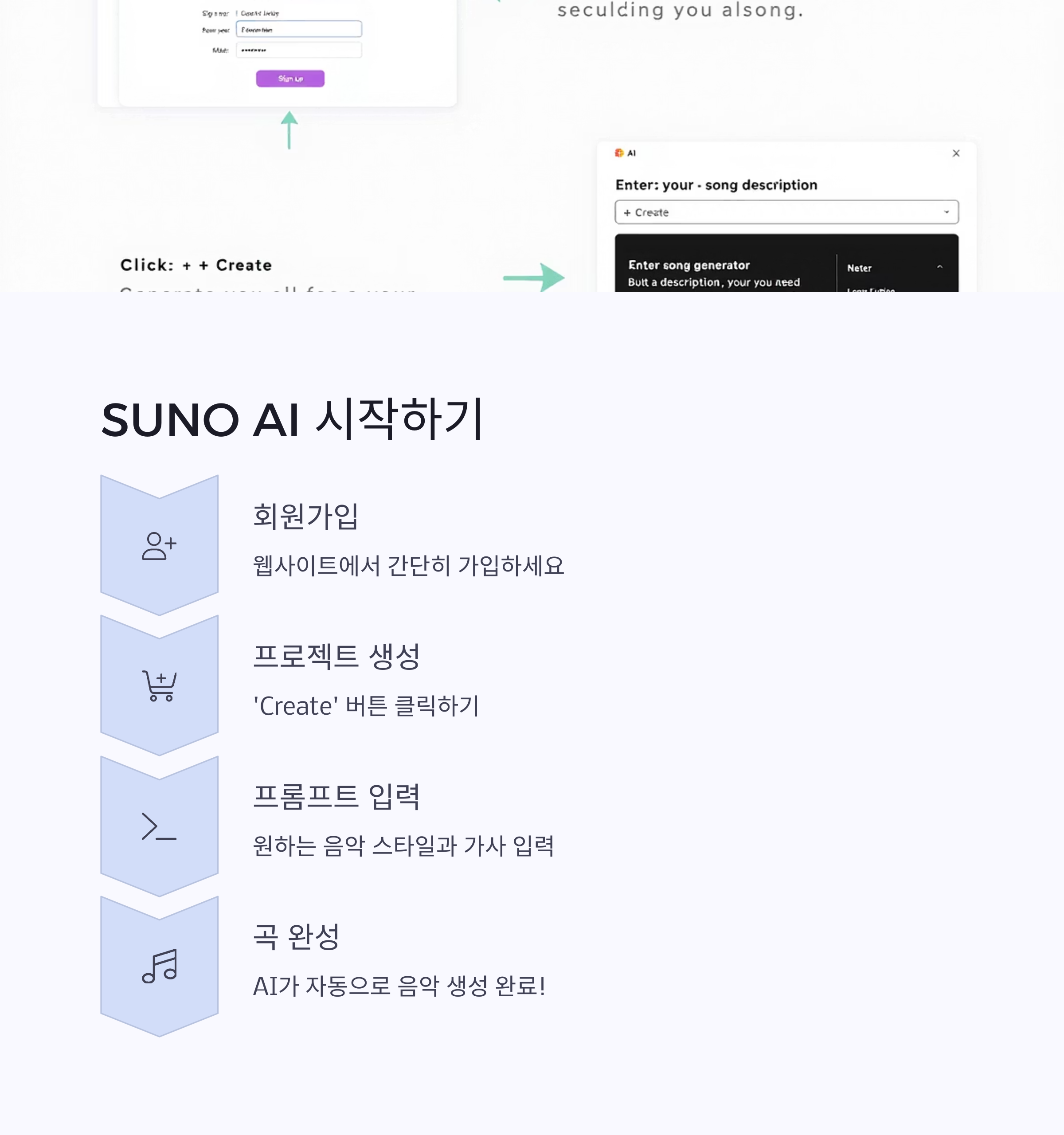 - suno.com 접속 후 Google, Discord 등으로 로그인